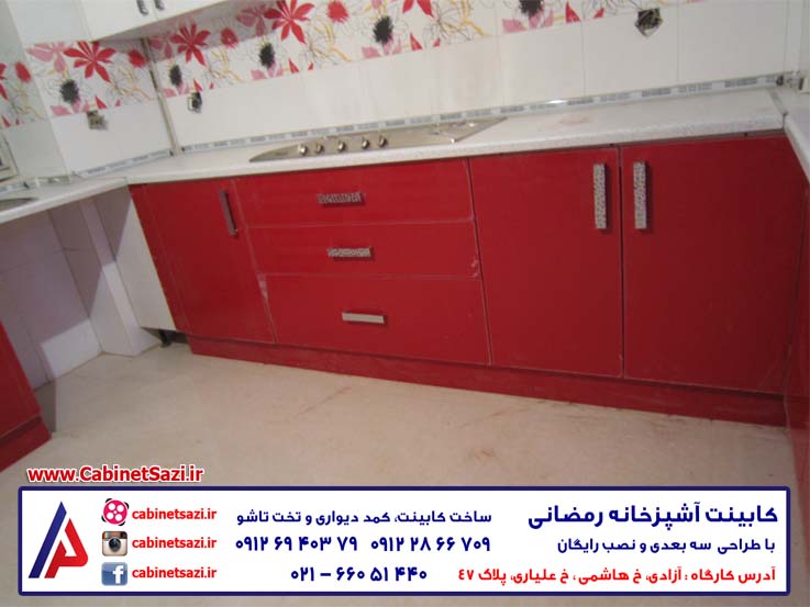 کابینت قرمز به یاری خداوند و توسط کابینت سازی رمضانی ساخته و نصب شده است. همچنین می توانید برای مشاهده ی قیمت کابینت، قیمت کمد دیواری، قیمت تخت تاشو به ادامه ی مطلب مراجعه کنید!